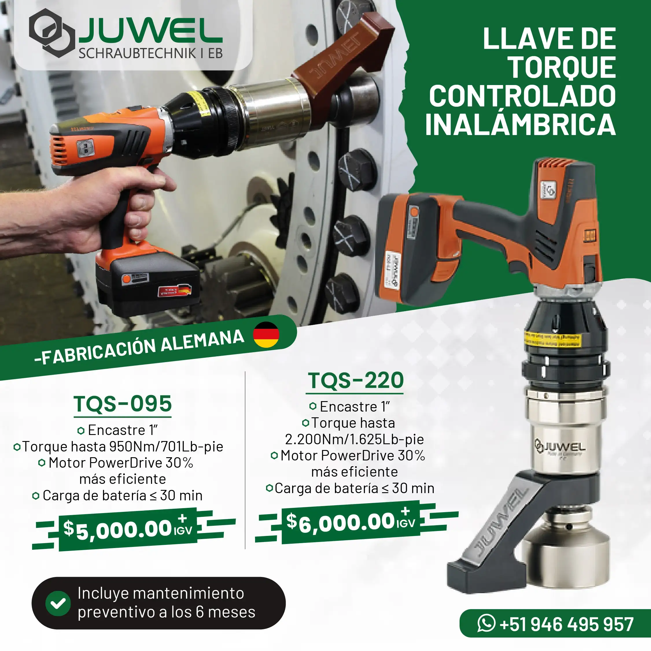 JUWEL la "Joya", implica alta calidad y larga vida útil en todas sus herramientas de control de torque. Es la mejor opción en aplicaciones para la industria: naval, montaje industrial, construcción, eólica, ferroviaria, petroquímica, etc.